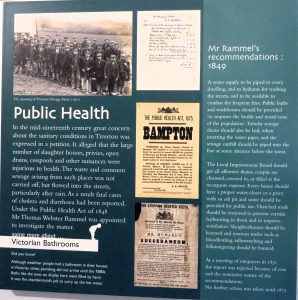 However, come to our ‘medical corner’ and you can see all sorts of things used by health professionals a few years ago. You can also learn a bit more about public health, or the lack of it, in Tiverton in the 19th century.